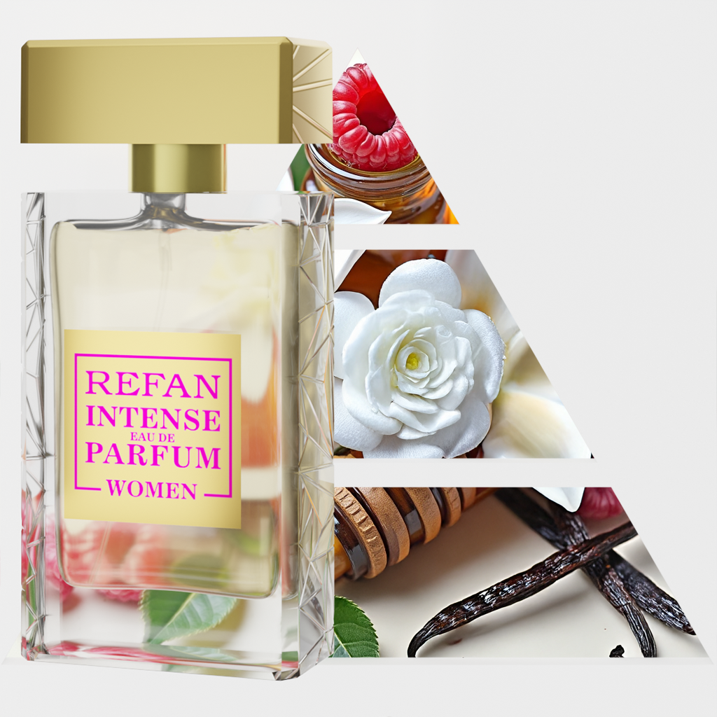 A fascinating, fresh, floral, woody fragrance of orange blossoms, a touch of raspberry, Arabian jasmine, gardenia, honey, patchouli, vanilla, amber.